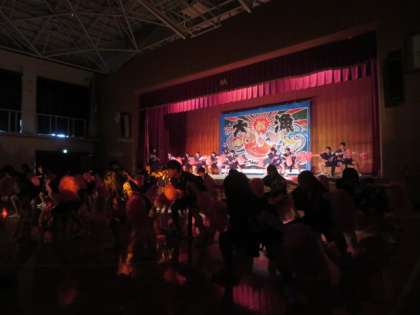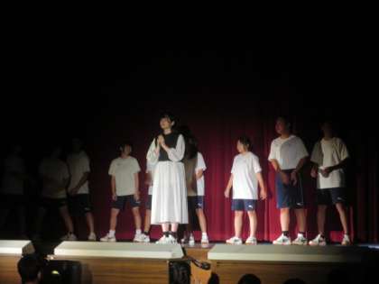 2年生は「人を幸せにする」という劇を発表しました。最後にはよさこいソーランを披露しました。
