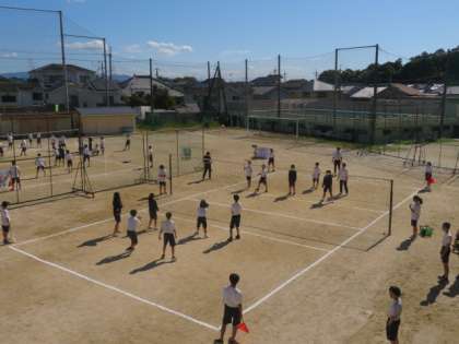 今、1年生はバレーボールを楽しく声を掛け合いながら頑張っています。今日はとても過ごしやすい気候でよかったですね。グラウンドから楽しそうな高い声が聞こえてきます。