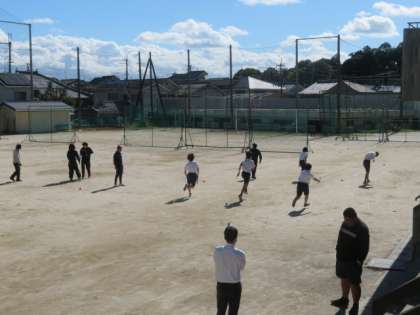 7組は、保健体育の授業で、バトンパスの練習を何回もしていました。声を掛け合いながらバトンをしっかり相手にわかるように渡すことを意識して頑張っていました。
