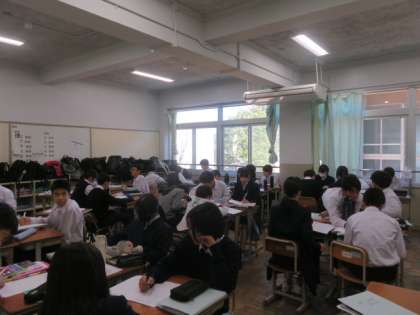 2年生の理科では、グループワークをしていました。積極的にわからないところは仲間に相談する姿勢がいいですね。