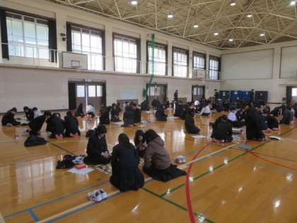1年生の百人一首大会の様子です。「わぁ〜」「うぉ〜」という声が響いていました。
