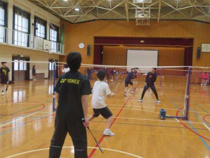 体育館でバドミントン部が活動している様子です。寒い体育館ですが、みんな動き回っていて熱気がありました。頑張ってます!活動の様子を見ているだけで、何だか元気をもらえました。