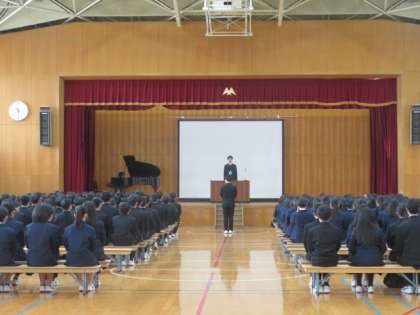 2限に卒業式の予行を行いました。在校生の代表も入ってもらい、最終確認をしました。3年生はキリッとした雰囲気で、明日への決意が表情に現れています。
