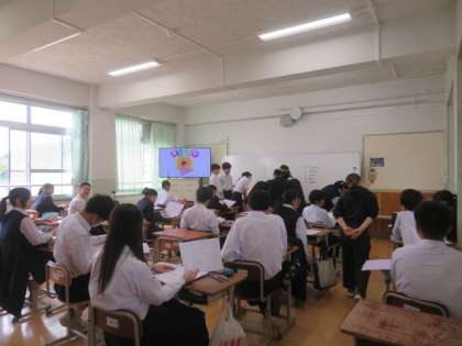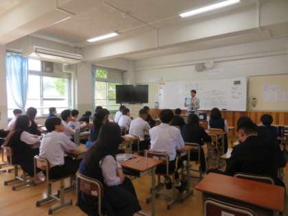 3年生の授業の様子です。クラスが4クラスから6クラスになり、クラスの人数も減り、大変落ち着いた中で学習しています。廊下には、オープンキャンパスや高校見学会のポスターも増えてきました。少しでも興味がある学校には、積極的に行ってほしいと思います。