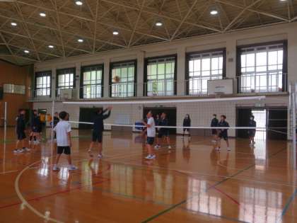 2年生の数学・体育・英語の授業の様子です。体育では、バレーボールに取り組んでいます。ボールを落とさない姿勢が見られ、みんな意欲的に動いています。