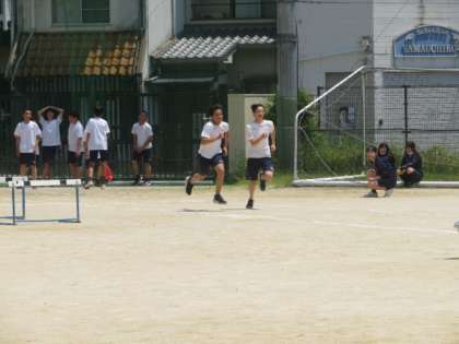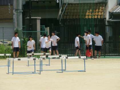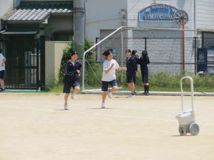 3年生も50メートル走に取り組んでいます。さすが3年生、スピードが違います。スタートしてからゴールまでがあっという間です。青空のもと、体を存分に動かしています。