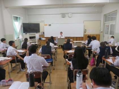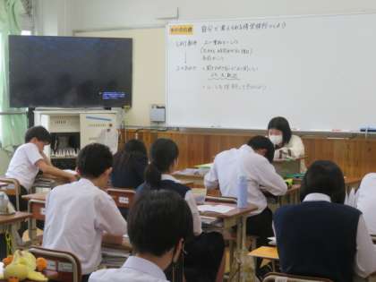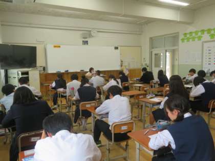 3年生は修学旅行のしおり読み合わせを行いました。修学旅行の流れや持ち物等について、確認できたかと思います。代表生徒のイラストで表紙は作られています。とっても楽しみですね。ルールやマナーをしっかり守って、みんなが楽しい修学旅行にしてほしいと思います。