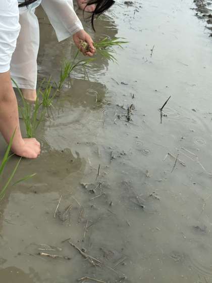 学年やクラスの仲間だけでなく、アメンボやおたまじゃくしとも一緒に体験を行っています。みんな楽しそうです!