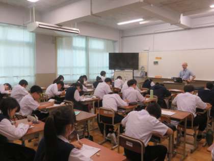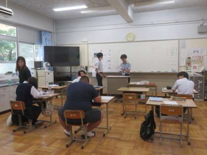 7組の数学では、分数の足し算を一生懸命解いています。また、2年生の理科では、小テストに取り組んでいます。