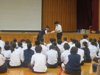 そして、生徒のみなさんからは、先生に向けて感謝状が渡されました。とても温かい集会でした。