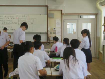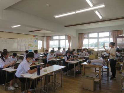 3年生の美術の授業の様子です。自分のハンコを制作しようと授業で、ハンコの仕組みや材料を確認し、これからデザインや字体を、それぞれが個性豊かに考えていくことになります。どんな作品ができるか、とっても楽しみです。