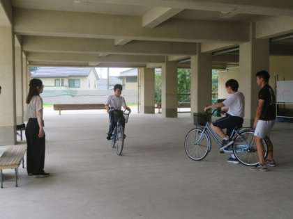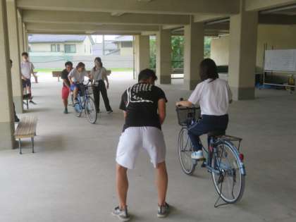 7組の保健体育の授業の様子です。自転車に乗ってみようということで、アドバイスを聞き、補助してもらいながら頑張ってこいでいます。少しずつできることが増えてくると、笑顔があふれてきます。