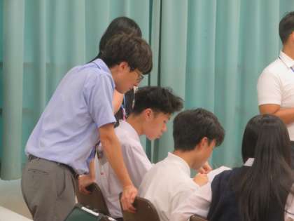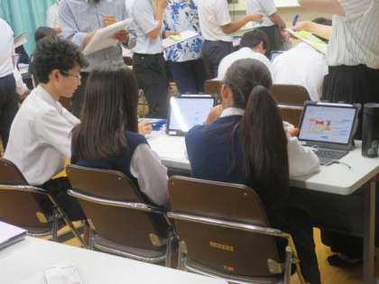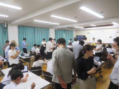 今日は、右京支部の中学校で各教科に教職員が分かれ、研究授業を行いました。本校は英語の授業で、AIと英語面や話題面でよりよい会話をすることができるという目標のもと、授業を進めていきました。