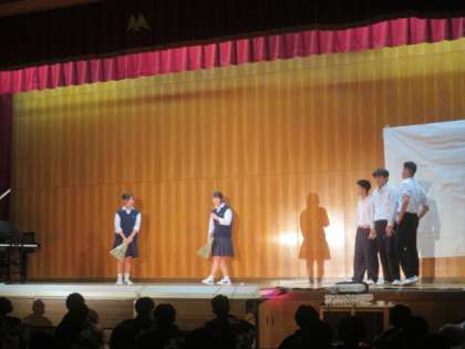 3年生の発表の様子です。修学旅行での取り組みも含めて、発表を行いました。最後の文化祭、展示を作成する人、ダンスを踊る人、演技をする人…それぞれが役割を精一杯果たすことができました。