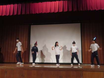 7組の保健体育科のダンス発表会の様子です。1曲だけではなく、数曲のダンスを覚え、堂々と発表しています。また、アンコールにもこたえてくれました。振り返って何点だった?という先生の問いに、100点と答えている生徒もいました。自信がどんどんついてきています。