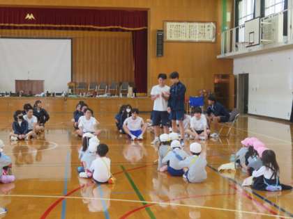 3年3、5組は、本日家庭科で幼児とのふれあい学習を行いました。天授ヶ岡幼稚園から園児のみなさんに来ていただきました。体育館と図書館で、ボール遊びや折り紙等で楽しく触れ合うことができました。