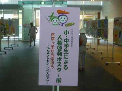 右京区人権啓発事業「小・中による人権啓発ポスター展」に本校から6名の生徒作品を参加しました。9月8日(土)〜17日(月):サンサ右京(右京区総合庁舎)1階区民ロビーにおいて展示されています。右京区の小中各校の作品が展示され,来庁された方の多くが足をとめ作品を見られていました。