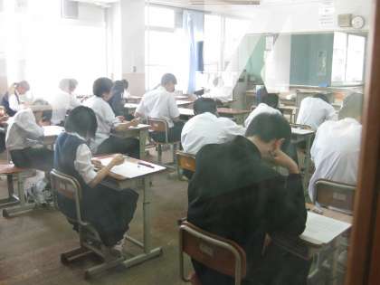 中学校入学後初めて「まとめテスト」を経験する1年生をはじめ、生徒たちは緊張しながらも、必死に問題に取り組んでいました。明日の二日目の是非とも頑張ってほしいものです。