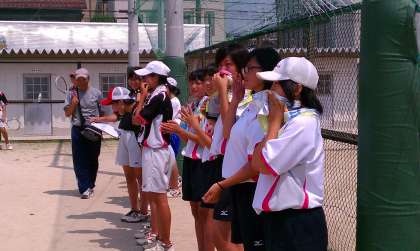 ソフトテニス部も頑張りました。炎天下の中、懸命にボールを追いかけ、府大会に個人戦出場を決めました。チームが一丸となって応援し、最後の夏を全うしています。
