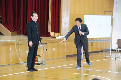 きょうの授業では,先生が見本となって,「どのような着方をするべきなどか」などについても考えました。同じ制服でも,着方によってかなり印象が違うものですね。