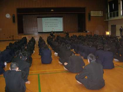 18日(木)4限:「携帯教室で学ぶ」の1年生の授業に、KDDIから講師を招いて、“ケータイ・ルール・ブック”の冊子を使い、ケータイで変わる生活・コミュケーション、危険なネット犯罪などについて学習しました。