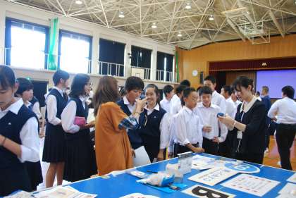 後半では,4つのコーナーを回りながら,実験や標本に触れる体験をしたり,喫煙川柳やクイズ,「きっぱり断るナイスな一言」への回答づくりなどを行いました。