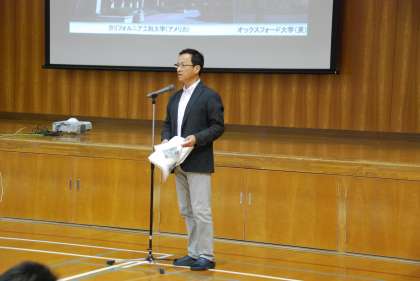 とても自分の将来のためになる素晴らしいお話だった。大学によって全然違う授業の受け方だったし,同志社大学で行われているパソコンや電子黒板を使って行う授業はすごくやってみたいと思いました。また,オープンキャンパスに中学生も行けると知って行きたいと思ったし,京都にある大学について進路のことも含めてもっといろいろ知りたいと思いました。そして,自分が大学に行くとなったときに,仕事のためにという他にもどうしてこの大学に行きたいのかという理由をもっと見つけていきたいし,あと家庭学習はしっかりしようと思いました。
