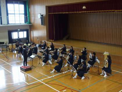 双ヶ丘中学校は,吹奏楽部の演奏で,アニメの主題歌や,日本の秋の歌のメドレーなどを聴かせてくれました。