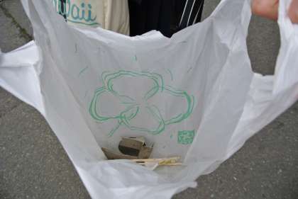 きょうは登校時地域清掃活動も行う日で,みんな軍手と袋を手に,いつも通学している道ばたのゴミを拾いながら登校しました。