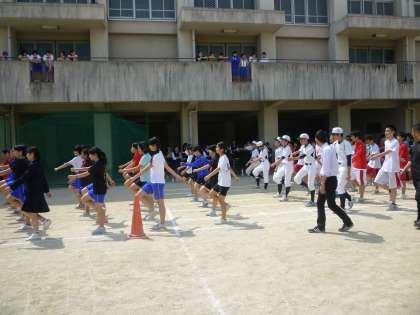 来週4月29日に行われる「春季総合体育大会開会式」での行進練習を行いました。この行進練習を通して,各部活動の春季大会に向けての士気を高め,さらに双ヶ丘中学校生徒会の団結力も高められたらと思っています。生徒会長を筆頭にとても良い雰囲気で行進練習ができました。本番が楽しみです。
