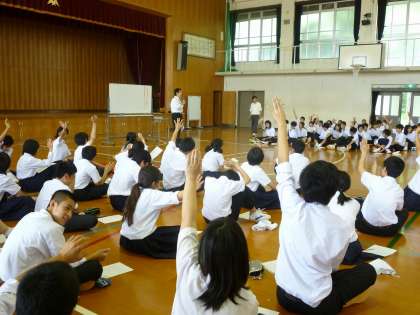 2年生は,4限体育館で学年道徳を行いました。「父母や祖父母に敬愛の念を深め,家族の一員として思いやりの心をもち生活する態度を養う」ことをねらいに,生徒一人ひとりが自分の思いや,考えを発表することができました。「あらためて,親の心情について考えることができた。よい家族をつくりたい。家族について考え直せた。家族については,お互いの長所,短所両方認めあえる家族をつくりたい」などの感想が寄せられました。学年全体でのみんなの活発な意見交流は素晴らしかったです。