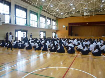 3年生は、修学旅行前の団体行動練習を体育館で実施しました。5月31日(火)からの修学旅行にむけて、飛行機やバスに乗るのに時間がかかれば、その後の行程が遅れます。まさしく、修学旅行は時間との戦いでもあります。参加者全員が安全・安心に修学旅行から無事帰ってくるために、事前の集団行動練習が欠かせません。先生の指示をよく聞き、規律と責任ある行動をよろしくお願いいたします。そのことによって、後の行程に余裕が生まれ、より楽しく充実した修学旅行につながります。