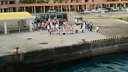 フェリーは、伊江港に到着。素晴らしい歓迎に感動しました。下船後の、伊江島での入村式が楽しみです。