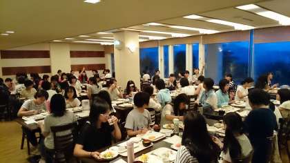 センチュリオンホテルでの夕食です。今日は、バイキングなのでたくさん食べて沖縄料理を味わってください。特に男子の食欲はすごいそうです。