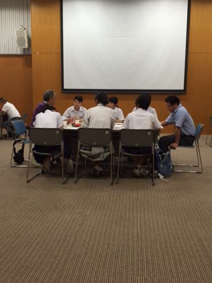 午前中に右京区役所で第2回「右京区ジュニア円卓会議」が行われました。本校からも生徒会役員が5名参加しました。今日のテーマは、「学区自治連会長にインタビューしよう」で、右京区内から5名の自治連会長に来ていただき、中学生からの質問に答えてもらいました。悩みとして、若い人が自治連の活動に参加されないことを挙げられた会長さんが多かったです。また、中学生が地域の様々な場面で活躍してくれることを望んでおられました。参加した中学生もよい刺激を受けました。