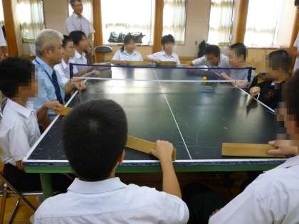 7月に鳴滝総合支援学校から本校の部活動見学に来ていただき,生徒会との交流を行いました。今回は,本校の交流委員が,鳴滝総合支援学校を訪問し,「卓球バレー交流会」に参加しました。一度お互いに顔を合わせていることもあり,楽しみながらも,真剣に卓球バレーを行いました。交流することで,お互いを理解しあい,よりよい関係を今後築いていってほしいです。