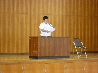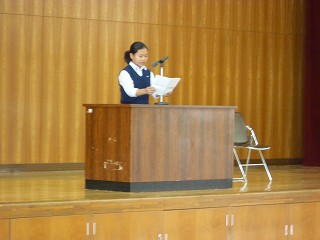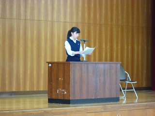 1年:「私はふと思いました。『歌いたくても歌えない人がいる。笑いたくても笑えない人がいる。でも私は,歌える,笑える。じゃあ『歌えない』とは決して言えない。この詩をみんなに訴えよう,届けよう』と。」
