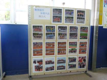 春季総合体育大会の開会式と遅くなりましたが、入学式・1年生を迎える会の写真を職員室前に掲示しています。来校された時に、ぜひご覧ください。