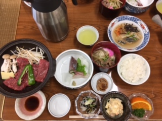 昨夜の夕食はA5ランクの壱岐牛、郷土料理のひきとおしなど盛り沢山でした。