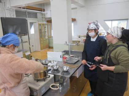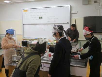 7組では、収穫できたじゃがいもを使って、調理室にてシチュー作りをしました。2グループに分かれて、野菜や肉を切ったり、材料を炒めたり、じっくりコトコト煮込んだりしながら、シチューを頑張って作りました。鍋やお皿もきちんと洗って、後片付けもバッチリでした。