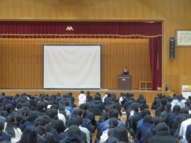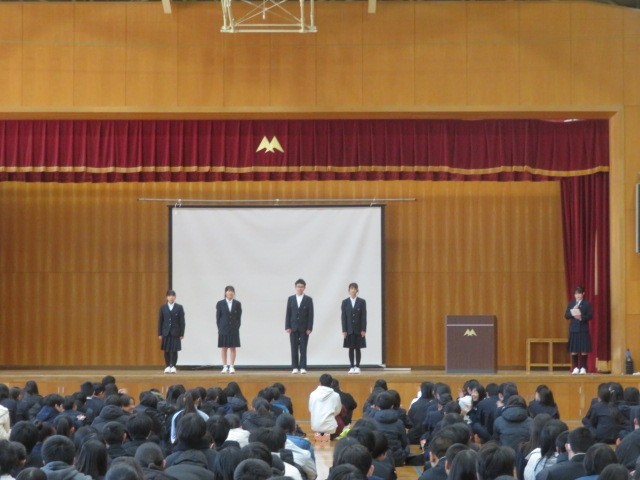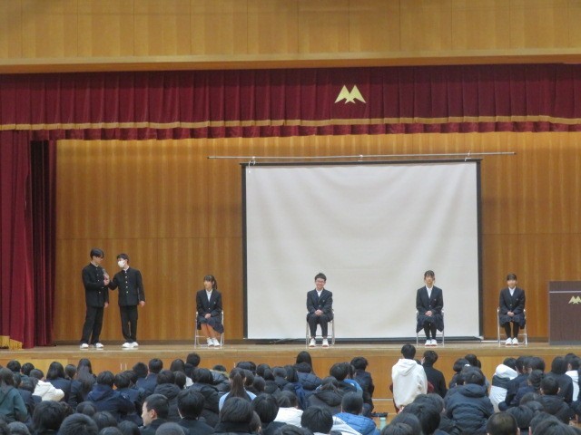 6限に1年生が全校生徒に向けて発表をする、トークイン双ヶ丘が体育館にて行われました。10年後の自分への手紙をテーマに、各クラスの代表者1名が発表しました。自分の得意なことや興味のあること、また将来の夢など、自分たちのキャリアについて考えてきた内容でした。将来の自分に期待を込めた、とても素晴らしい発表でした。