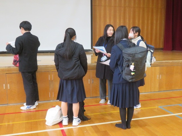 3年生の多くは、いよいよ明日から、私立高校の受験となります。受験する上での注意事項を、進路指導主事より再度伝えました。今まで一生懸命やってきたと思います。ジタバタせず、今日はしっかり持ち物等の準備をし、早く体を休めましょう。そして、明日、時間通りに受験校にたどり着きましょう。あとは、自分を信じて、仲間の頑張りも心で感じながら、精一杯自分の持っている力を出してきてください。応援しています!!