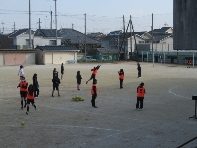 1年生の保健体育科の授業の様子です。ハンドボールに取り組んでいます。みんながボールに向かって、一生懸命に動いていることが素晴らしいです。得意・不得意はあるかもしれませんが、自分の精一杯を出して頑張ることってステキです。
