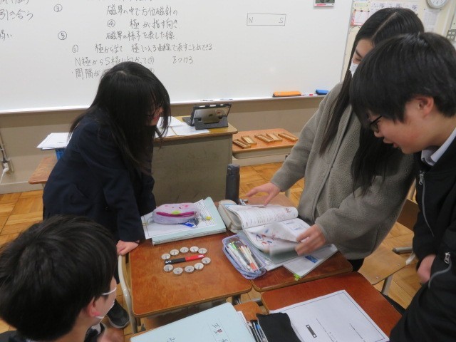 2年生の社会・理科の授業の様子です。社会では、1年生の時に学んだ地理の復習を行なっていました。理科では、磁力について方位磁針を使いながら学習を深めていました。昨日は3年生は公立前期選抜の合格発表がありました。あっという間ですが、2年生も入試まであと1年を切っています。自分の将来を見据えて、コツコツ引き続き頑張ってほしいと思います。