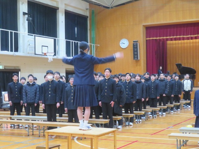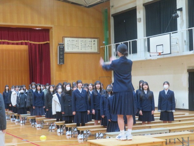 卒業式の練習ですが、厳粛に行われています。義務教育最後の大切な式典に向けて、みんな真剣に取り組んでいます。いよいよ明日は予行、あさってが本番となりました。