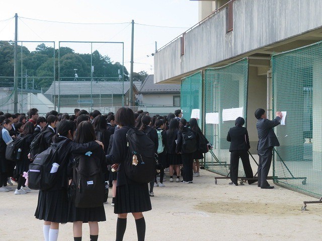 新クラスが発表され、グラウンドに新2年生・3年生の元気な声が