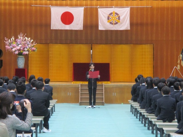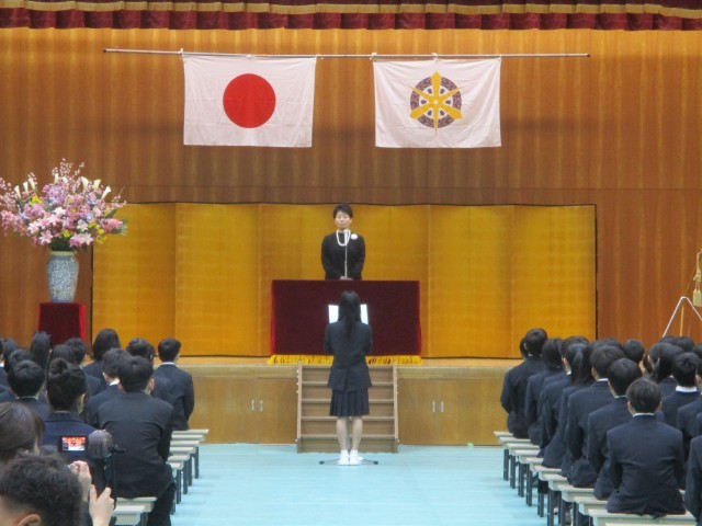 本日、第78回入学式を行いました。桜は満開の時期を少し過ぎてしまいましたが、新入生のみなさんの笑顔は満開でした。在校生代表から歓迎の言葉、新入生代表から誓いの言葉がありました。どちらもとても力強い言葉でした。この出会いを大切に、自分自身を笑顔にすること、仲間を笑顔にすること、自分の未来を笑顔にすることを意識して、3年間の中学校生活を過ごしてほしいと思います。みんなで一緒に頑張っていきましょう。