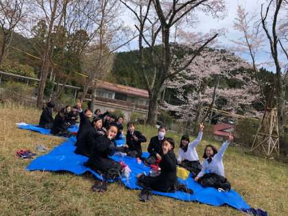 4月18日(木),青空の下で1年生は『お花見弁当』を楽しみました。校内に咲く桜の木の下で,1年生全員で楽しくお弁当をいただきました。時折,桜の花びらもはらはらと降ってきて,暖かい春の訪れを感じるひとときを過ごすことができました。