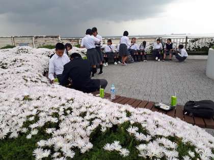 午前の日程を終えて,現在東京湾アクアラインPA「海ほたる」に到着しました。