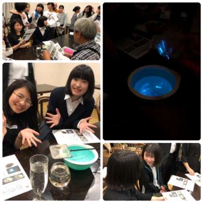 昨日の夜はペンションにて海ほたるを見せていただきました。子どもたちは声をあげて青い光に感動しているようすでした。ご飯もたくさん食べたようで満足そうな表情でした。